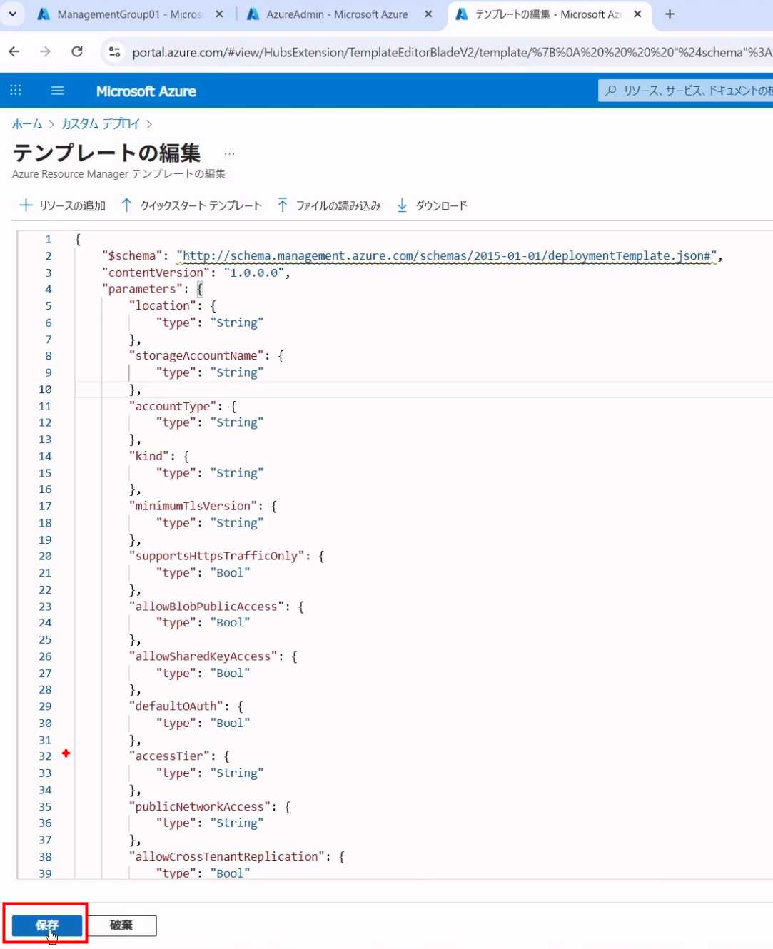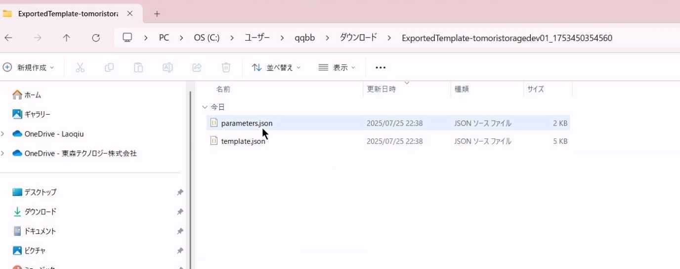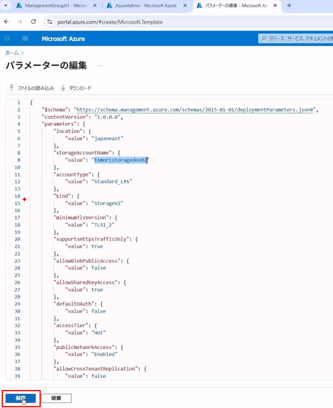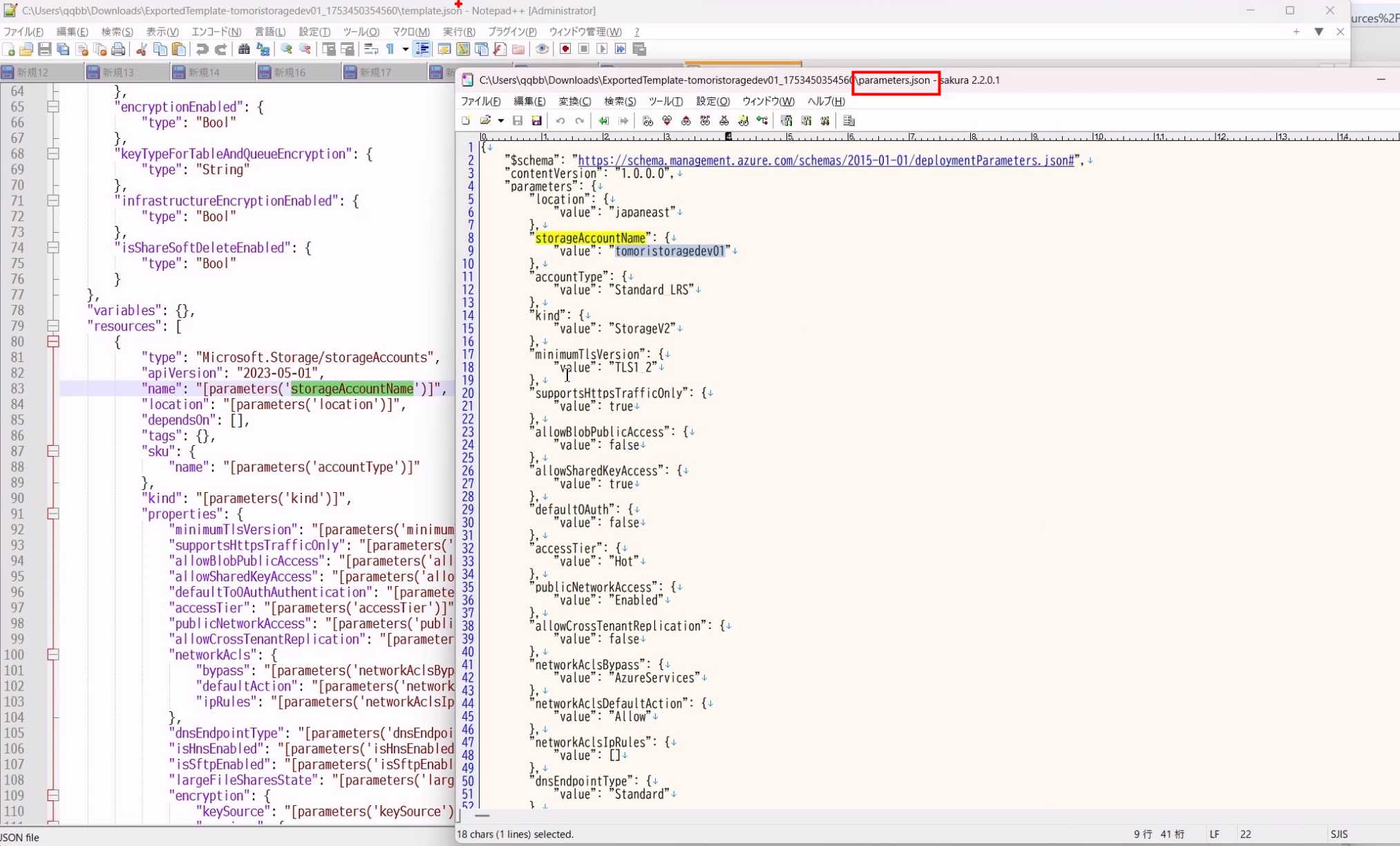 33、另一个parameter的json文件中,有Storage Account相关的名称设定等参数