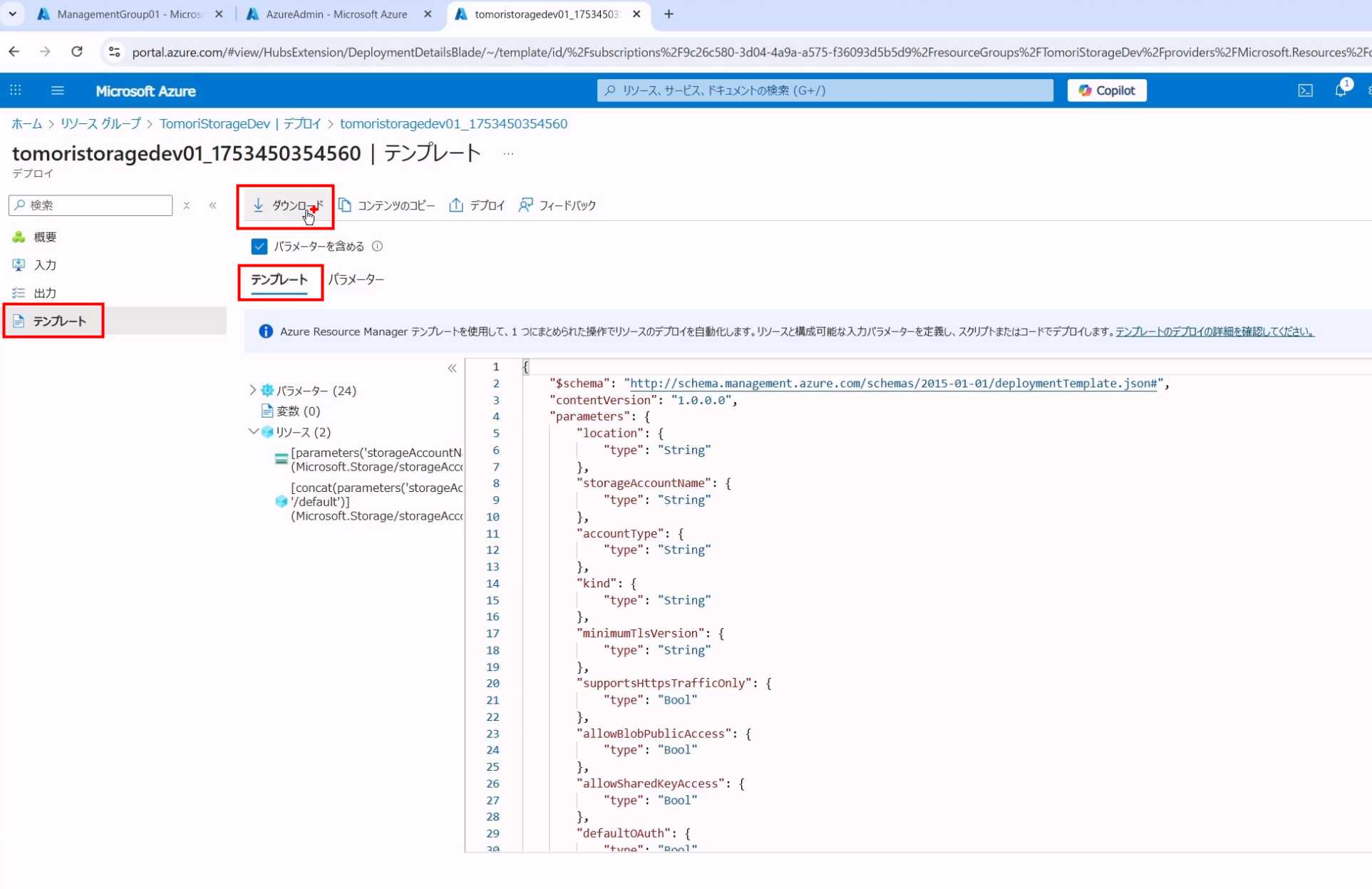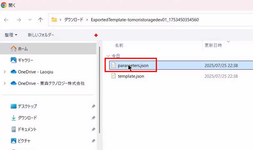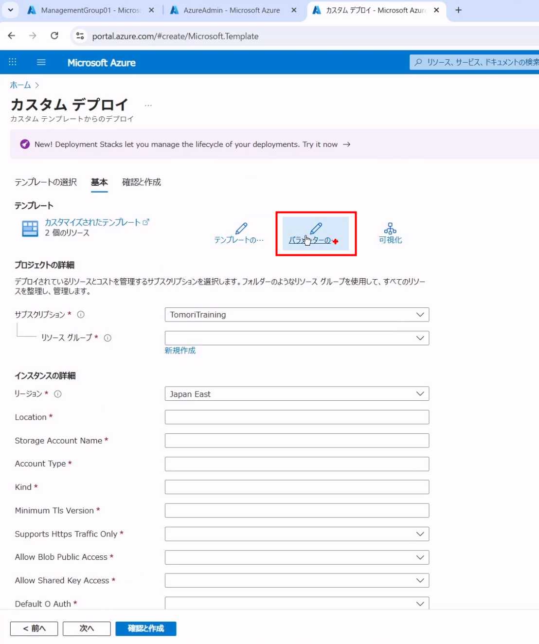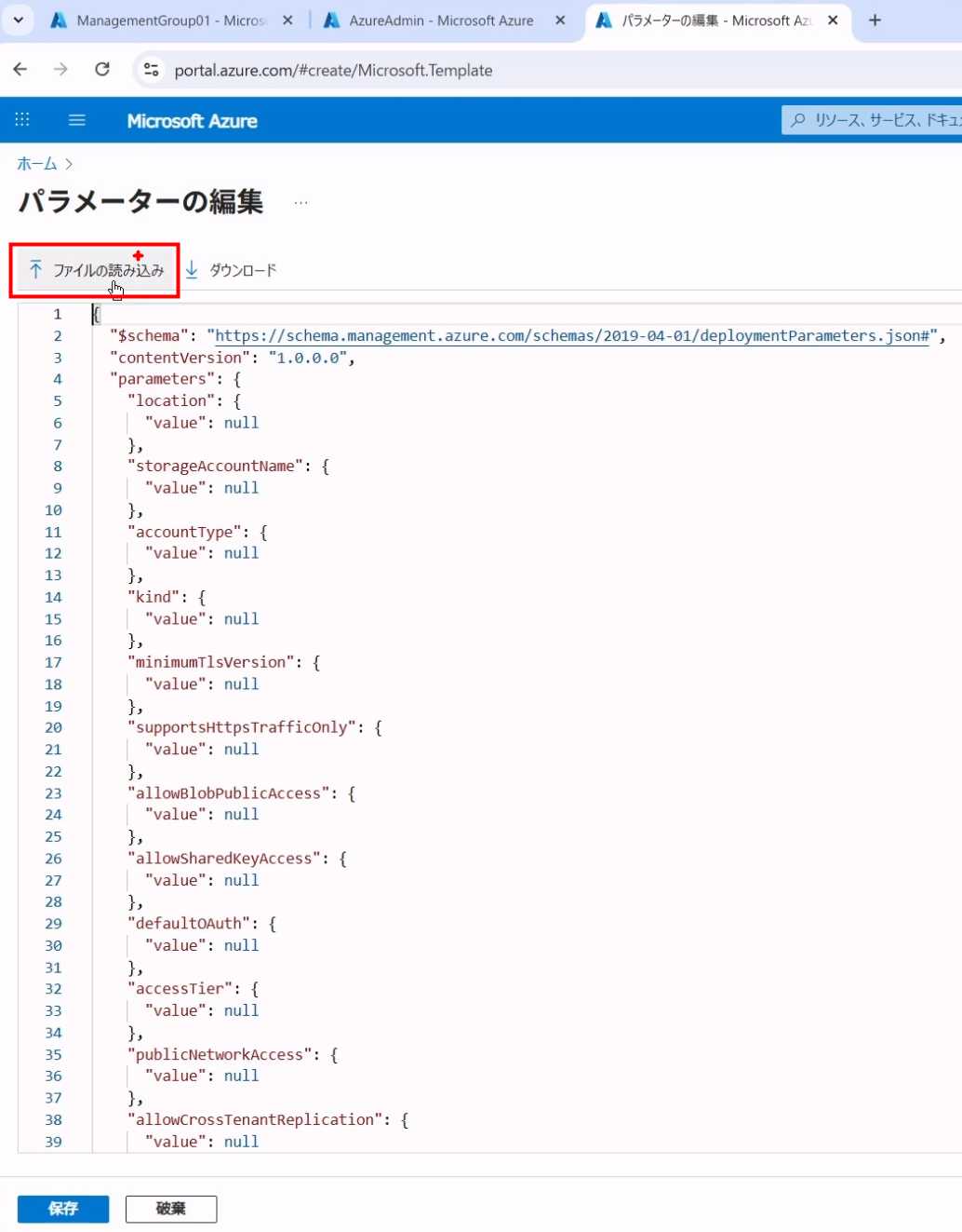 33、另一个parameter的json文件中,有Storage Account相关的名称设定等参数