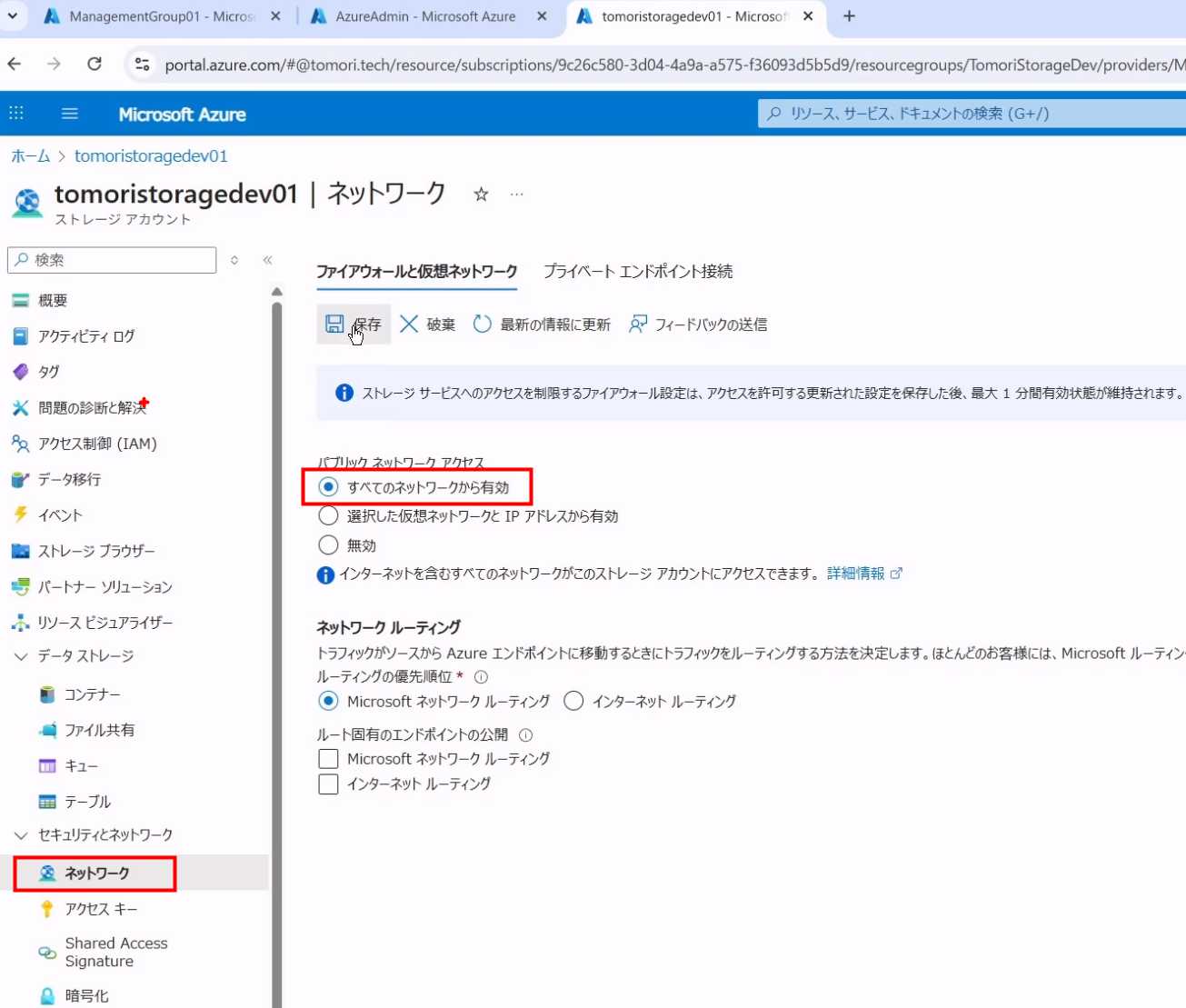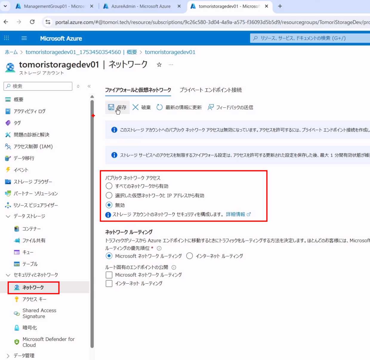 25、来看看Storage Account有哪些常用的选项,首先就是网络这里,可以设置哪些网络可以访问Storage Account,比如这里禁用公网