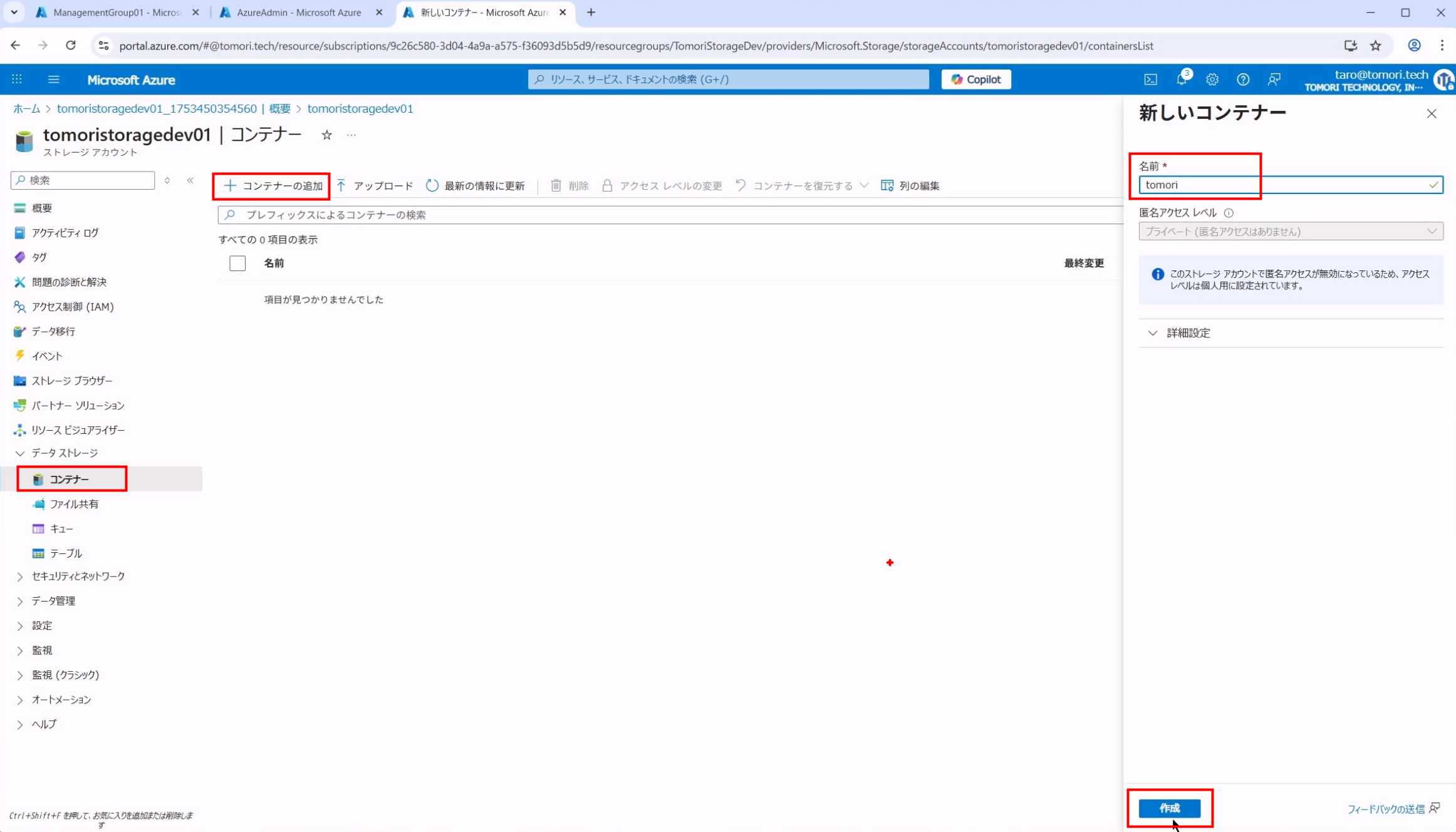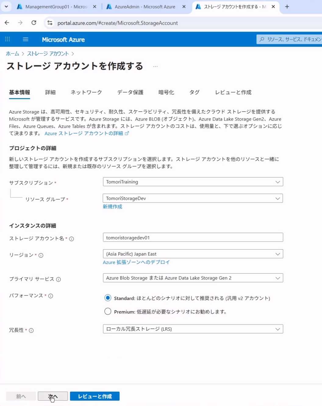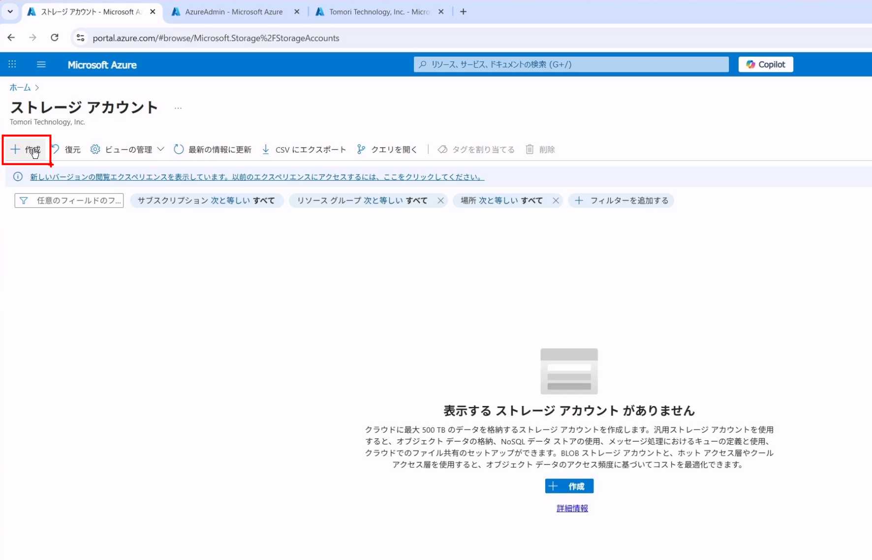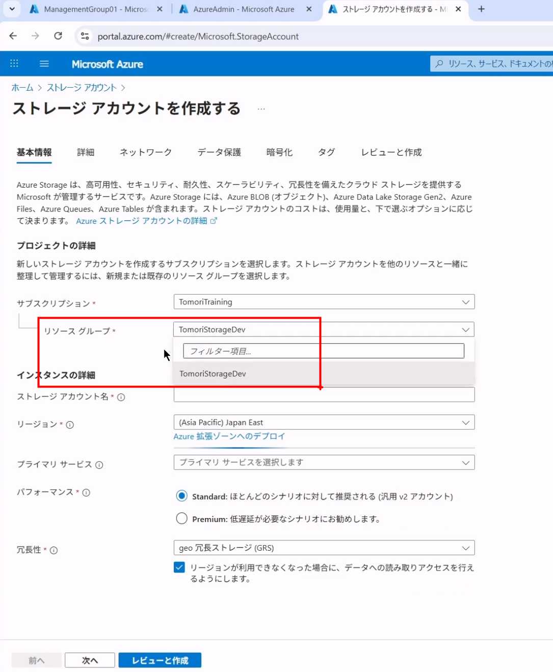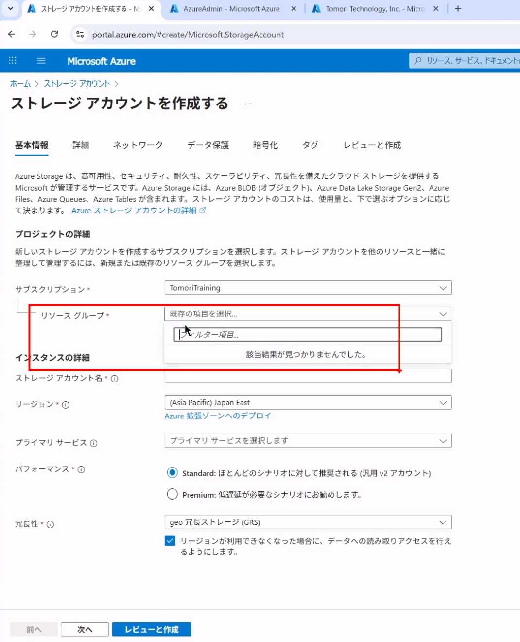 4、不仅是Storage Account,在创建资源时,需要给资源选择资源组,我们是初次创建,所以还没有资源组
