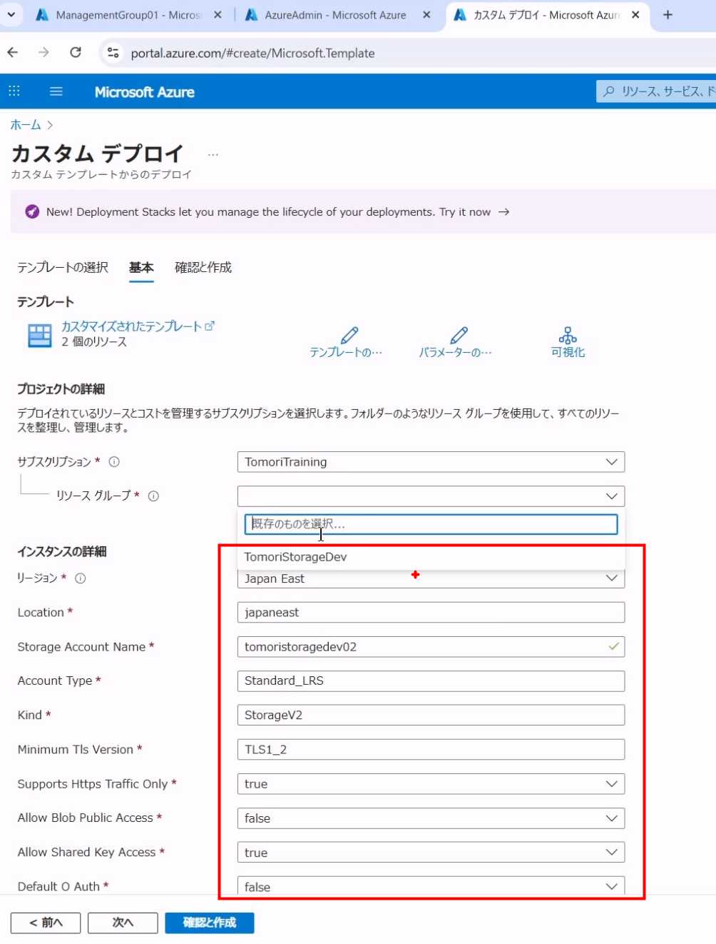 这样,就可以通过json文件创建Storage Account,通过模板创建和通过UI界面创建其实是一样的,UI界面创建其实就是生成了一个json文件提交给Azure