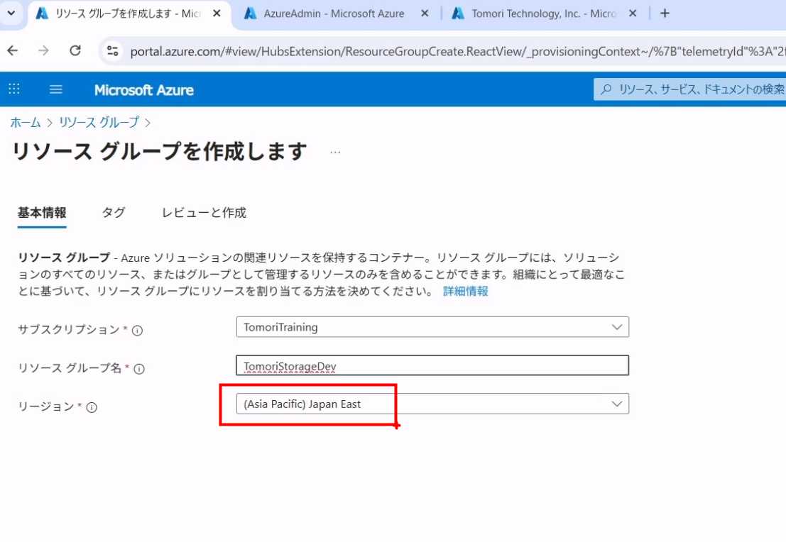 7、给资源组取个名字,更重要的是,选择他所在的区域,我们这里选择东日本