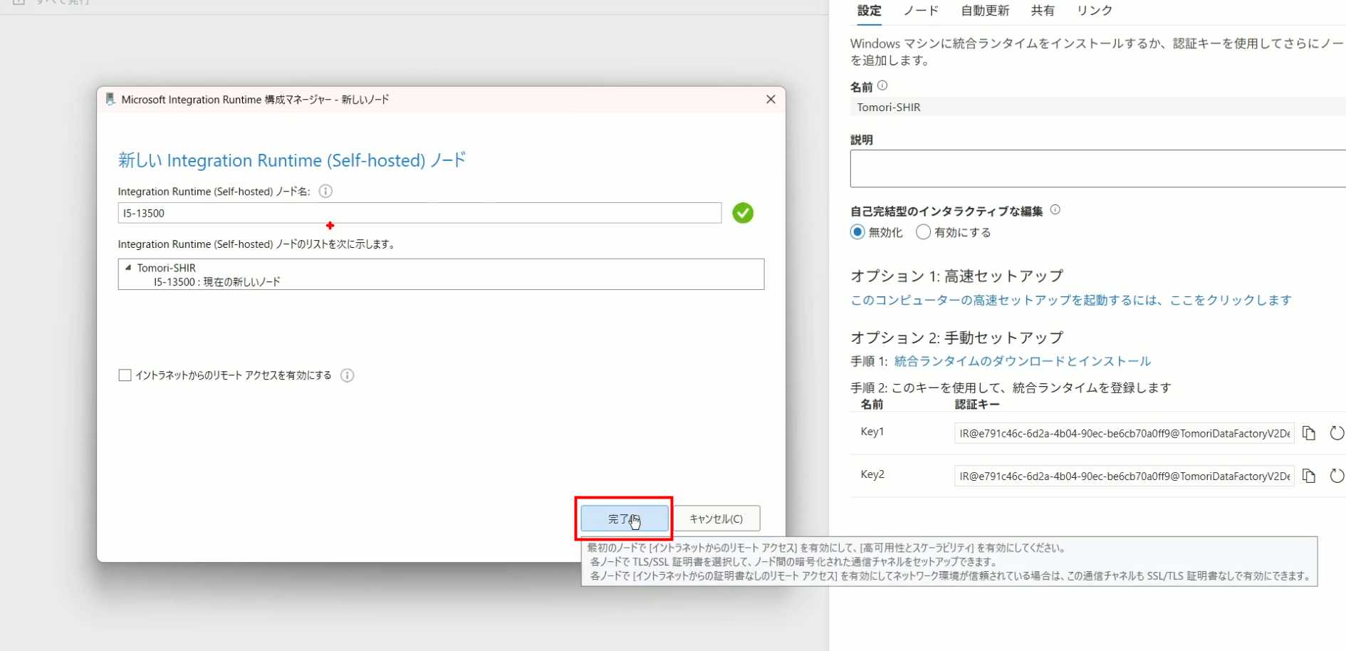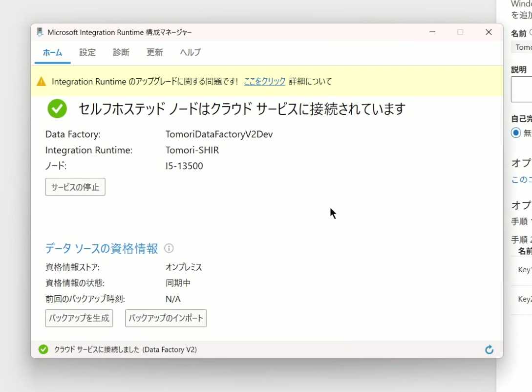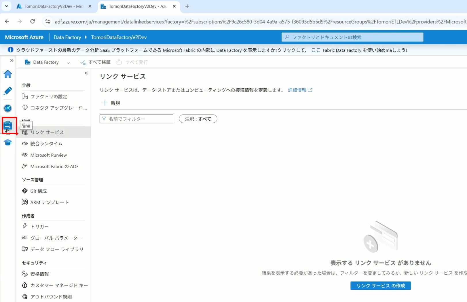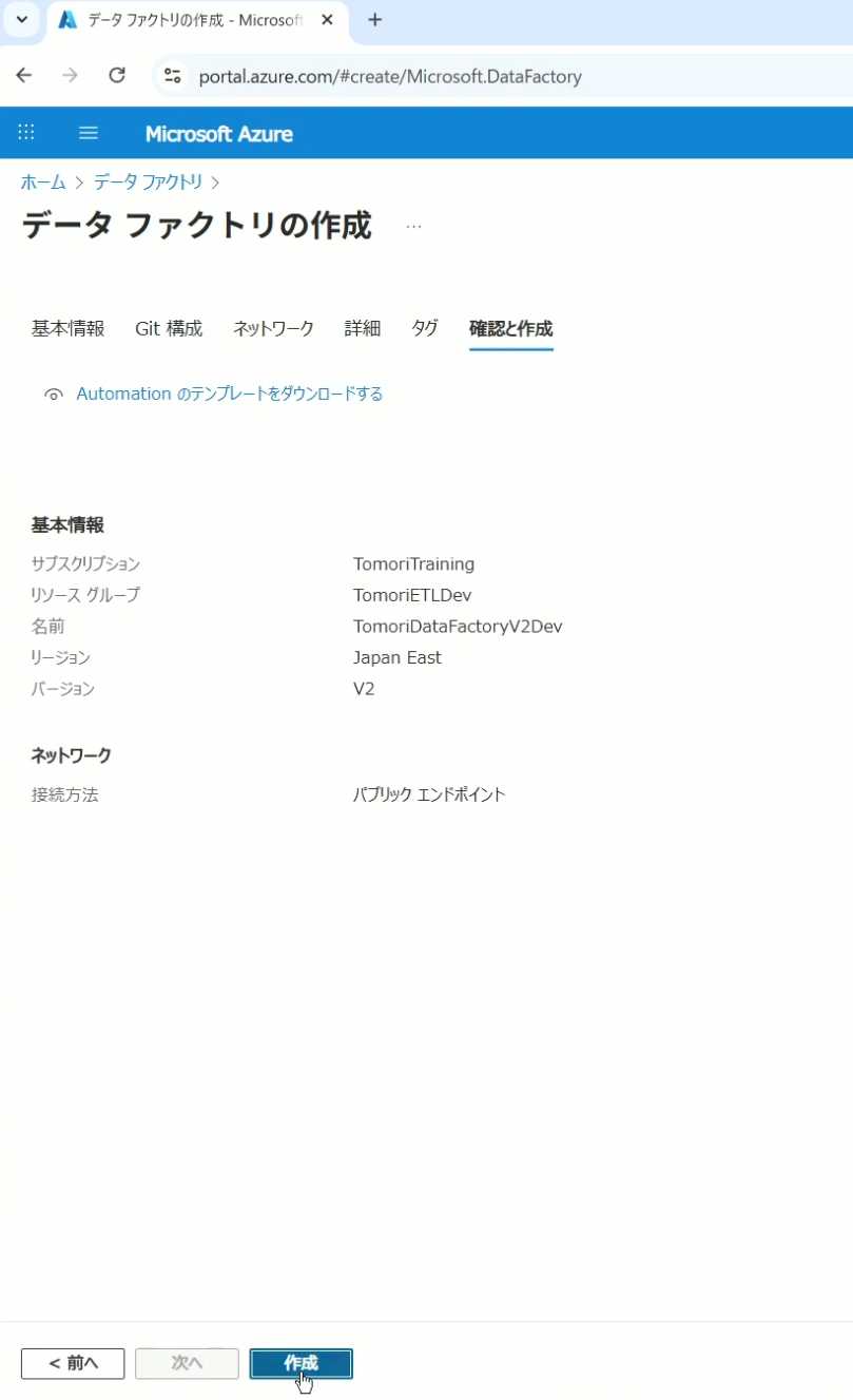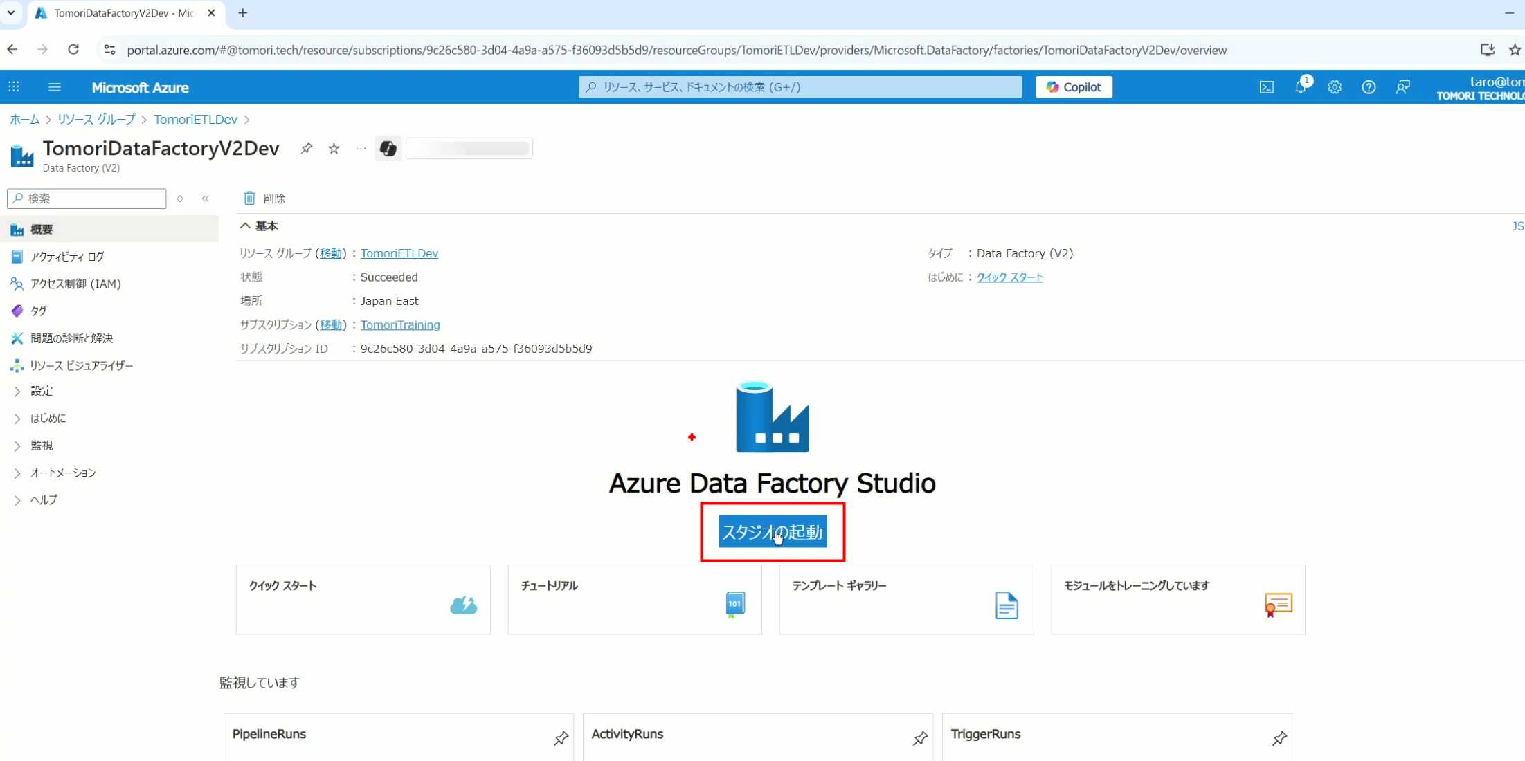 06_创建和使用ADF-01_创建ADF和Runtime 发布时间:2025-09-28 最后更新:2025-09-29 Azure 16 Data Factory:数据工厂 1、数据工厂示意图 2、数据工厂中的Pipeline示意图 3、在搜索栏搜索数据工厂 4、点击作成 5、可以在这里新建资源组(使用既有的资源组也可以) 6、填写数据工厂的名字,选择区域,这里选择东日本 7、勾选稍后设置Git 8、这里选择公网访问即可 9、然后就一直下一步,直到创建 10、创建成功的界面 11、进入数据工厂的话,可以从资源组进入 12、点击画面中间的启动按钮 13、这时会跳出新的窗口,进入数据工厂的工作区 14、初识工作区,这里是创建Pipeline等资源的窗口(Pipeline是数据工厂中处理执行的单位) 15、这里是监看窗口,可以监看Pipeline的执行状态 16、这里是一些设置和管理窗口 17、我们先进入设置和管理窗口,创建自己的Runtime(运行时),按画面的按钮点击 18、然后选择セルフホステッド(自托管),因为使用微软提供的AutoResolveIntegrationRuntime会比较贵 19、取个名字 20、然后作成即可(右上角显示了作成成功) 21、这时我们回到管理界面,发现这个自托管运行时是不可用的,这时因为还没有给他绑定实际的运行环境 22、按照这个按钮点击进入编辑界面 23、编辑界面里有下载运行时程序的链接,点击这个链接 24、跳转到了微软的运行时下载界面,在要安装运行时的机器上下载这个安装文件,练习的话,可以先在自己的本机上安装 25、点击下载,下载最新版 26、下载完成后,打开安装文件安装,一直下一步即可 27、安装完成后是这样的界面 28、将自托管运行时上显示的这串数字复制粘贴到运行时的设置窗口,然后点注册 29、一直下一步,直到完了 30、之后就可以启动运行时 31、启动后的界面,上面显示的更新问题他会自动更新,先无需理会 32、这时回到数据工厂的管理界面,发现运行时变为可用了,这样就完成了数据工厂与实际运行程序的机器的绑定,在数据工程中运行的程序,后台实际都由其绑定的机器来执行 33、如果进入Node界面,可以看到绑定的机器