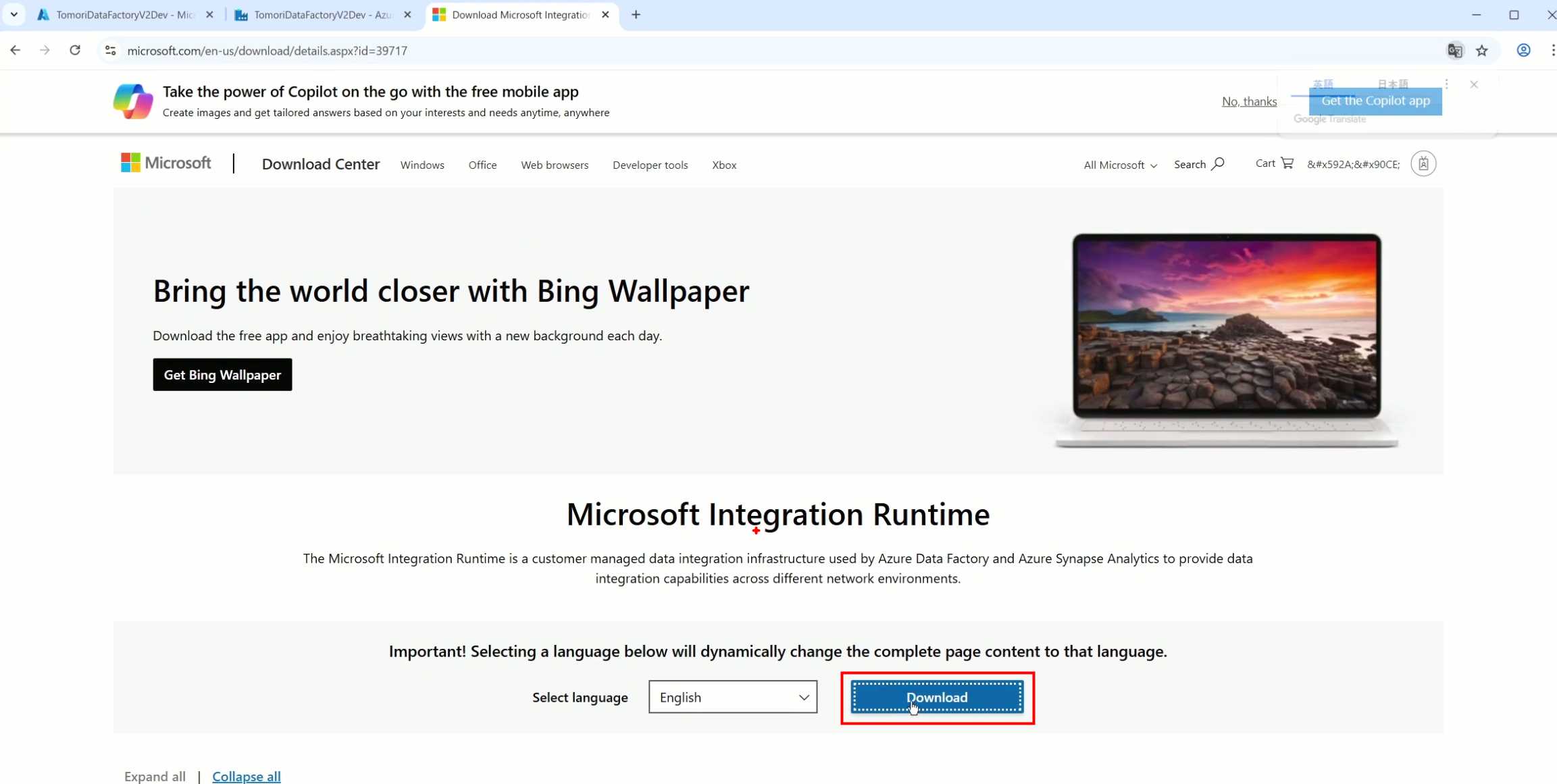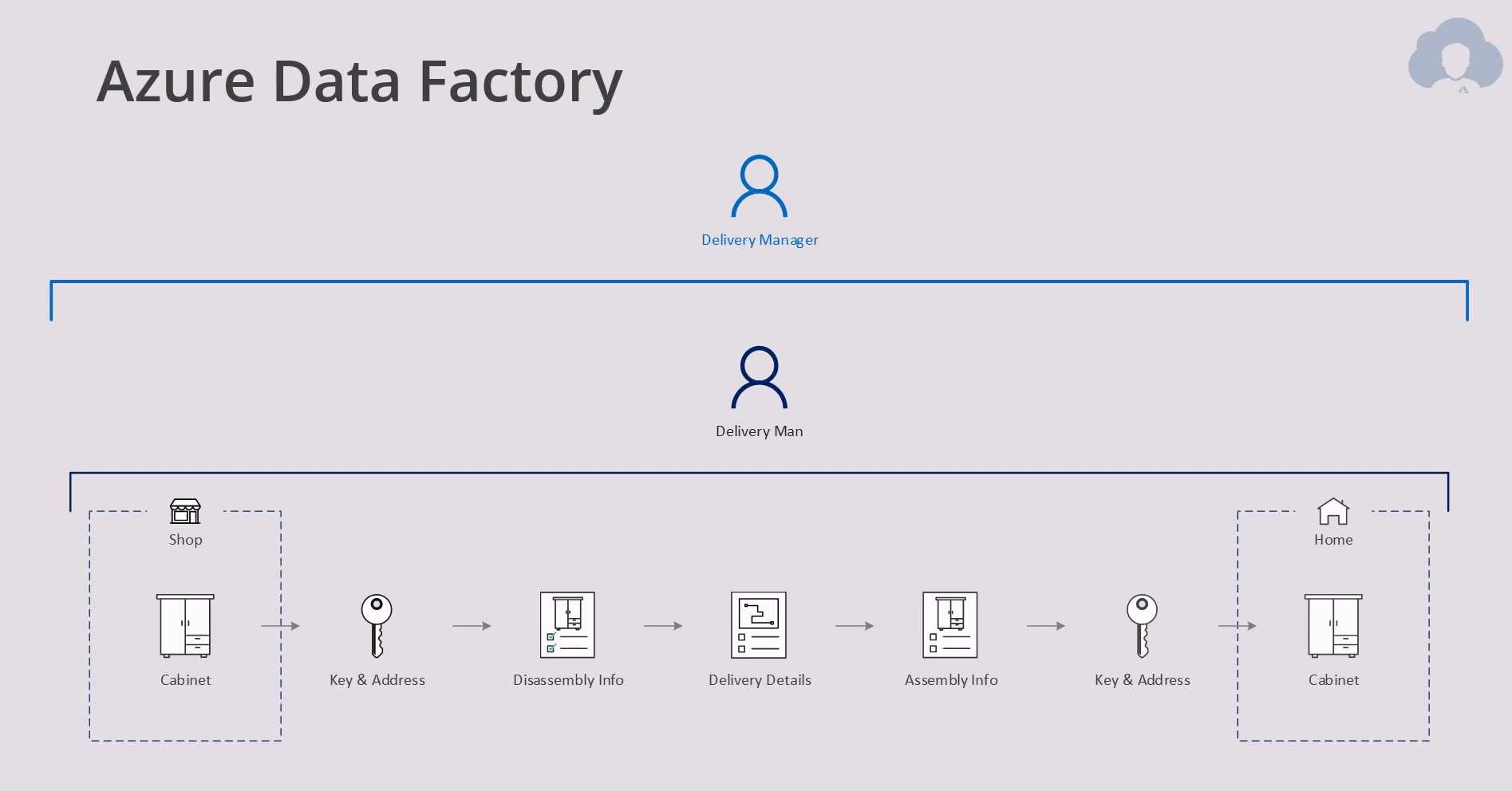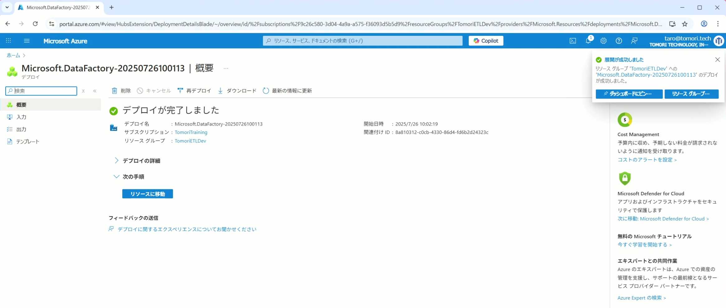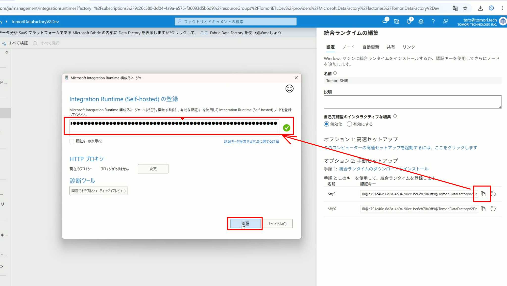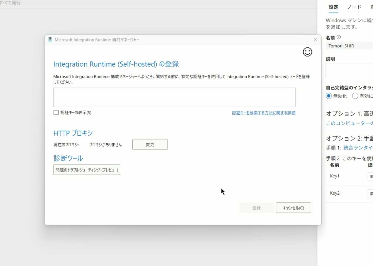 06_创建和使用ADF-01_创建ADF和Runtime 发布时间:2025-09-28 最后更新:2025-09-29 Azure 16 Data Factory:数据工厂 1、数据工厂示意图 2、数据工厂中的Pipeline示意图 3、在搜索栏搜索数据工厂 4、点击作成 5、可以在这里新建资源组(使用既有的资源组也可以) 6、填写数据工厂的名字,选择区域,这里选择东日本 7、勾选稍后设置Git 8、这里选择公网访问即可 9、然后就一直下一步,直到创建 10、创建成功的界面 11、进入数据工厂的话,可以从资源组进入 12、点击画面中间的启动按钮 13、这时会跳出新的窗口,进入数据工厂的工作区 14、初识工作区,这里是创建Pipeline等资源的窗口(Pipeline是数据工厂中处理执行的单位) 15、这里是监看窗口,可以监看Pipeline的执行状态 16、这里是一些设置和管理窗口 17、我们先进入设置和管理窗口,创建自己的Runtime(运行时),按画面的按钮点击 18、然后选择セルフホステッド(自托管),因为使用微软提供的AutoResolveIntegrationRuntime会比较贵 19、取个名字 20、然后作成即可(右上角显示了作成成功) 21、这时我们回到管理界面,发现这个自托管运行时是不可用的,这时因为还没有给他绑定实际的运行环境 22、按照这个按钮点击进入编辑界面 23、编辑界面里有下载运行时程序的链接,点击这个链接 24、跳转到了微软的运行时下载界面,在要安装运行时的机器上下载这个安装文件,练习的话,可以先在自己的本机上安装 25、点击下载,下载最新版 26、下载完成后,打开安装文件安装,一直下一步即可 27、安装完成后是这样的界面 28、将自托管运行时上显示的这串数字复制粘贴到运行时的设置窗口,然后点注册 29、一直下一步,直到完了 30、之后就可以启动运行时 31、启动后的界面,上面显示的更新问题他会自动更新,先无需理会 32、这时回到数据工厂的管理界面,发现运行时变为可用了,这样就完成了数据工厂与实际运行程序的机器的绑定,在数据工程中运行的程序,后台实际都由其绑定的机器来执行 33、如果进入Node界面,可以看到绑定的机器